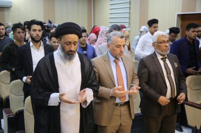 La cérémonie, qui s'est déroulée dans le hall principal de l'université, a débuté par une merveilleuse récitation des versets du Coran, suivie de la récitation de la sourate Al-Fatiha en l'honneur des martyrs d'Irak, puis ont écouté l'hymne national irakien et l’hymne du sanctuaire saint Al Abbas.