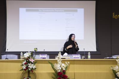 بعد ذلك انتقل الحضورُ والباحثون الى مفصلٍ آخر من مفاصل المؤتمر، وهو افتتاح ورشةٍ تخصّصية كانت بعنوان: (إدارة البيانات العلميّة الضخمة)، وقد قدّمت من خلالها الأستاذة دلال رحمة من الجامعة الأمريكيّة في لبنان رؤيتها بخصوص هذا العنوان، وشهدت مناقشاتٍ وملاحظاتٍ عديدة من قبل الحاضرين.