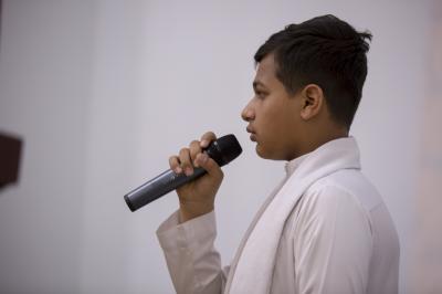 Auf sein Wort folgte eine Rezitation des Heiligen Korans, die von einer Gruppe von Mädchen gehalten wurde, die am Al-Koran Al-Kareem Institut für Frauen studieren. Anschließend folgte ein Theaterstück von den Schülerinnen der Schule Noor Al-Abbas (Friede sei mit ihm) über die Geduld und die Opferbereitschaft des Sohnes eines Märtyrers, der von der Geschichte seines Vaters lernte und Stärke im Leben als Waise zeigte. Daraufhin hielt Dr. Ahmad Al-Alyawi ein Gedicht zum Geburtstag von Sayida Fatima Az-Zahraa (Friede sei mit ihr).