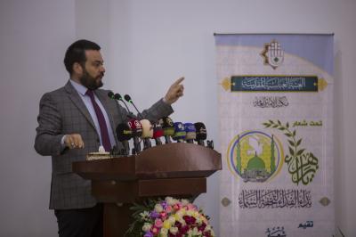 Im Anschluss folgte die Rede des legitimen Leiters der Heiligen Abbasitischen Stätte, Sayed Ahmad Al-Safi. Seine Eminenz begann mit der Beglückwünschung der Muslime und Liebenden und Anhänger anlässlich der Geburt von Sayida Fatima Az-Zahraa (Friede sei mit ihr). Bei ihrem Recht und dem Recht ihres Vaters, ihres Ehemannes und ihrer Söhne betete Seine Eminenz zu Allah und bat um ihre Segnungen, damit wir am Tage der Auferstehung ihre Fürsprache erhalten.