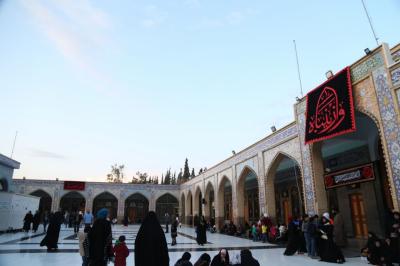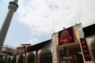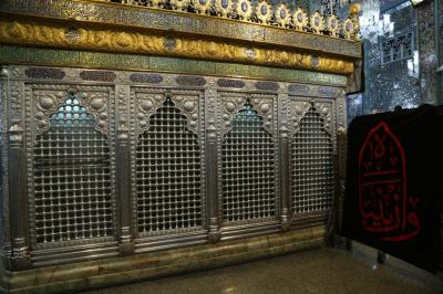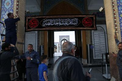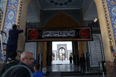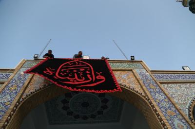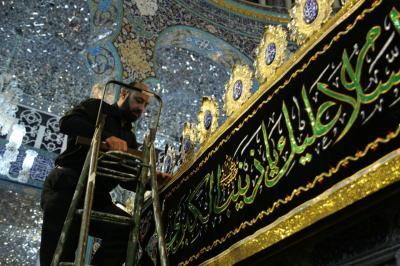 "Die Kader der Heiligen Abbasitischen Stätte bedeckten alle Seiten des heiligen Schreins der reinen Sayeda Zaynab (Friede sei mit ihr) und die Bereiche um ihren heiligen Schrein herum in schwarz. Die Arbeiten zur Fertigstellung der gesamten Ausrüstung zur Erinnerung an das Martyrium-Jubiläum des äußersten Beispiels der Geduld von Sayeda Zaynab (Friede sei mit ihr) sind im Gange."