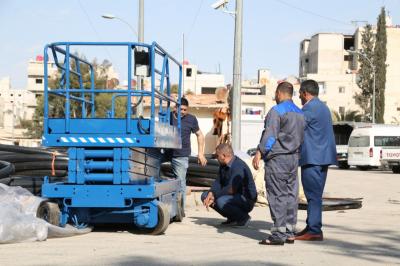 "Bei den vergangenen Besuchen haben wir zwei Hebemaschinen zum heiligen Schrein von Sayeda Zaynab (Friede sei mit ihr) gebracht. Auf dieser Reise haben wir einen speziell entwickelten japanischen Hydraulikkran mitgebracht, der automatisch vom Fahrer betrieben werden kann mit einer maximalen Höhe von 14 Metern. Mit diesem haben wir die elektrische Beleuchtung installiert."