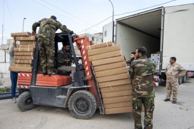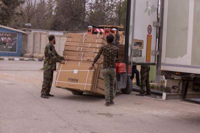 Le chef de la division de l'électricité du département de maintenance technique du sanctuaire sacré d'Al-Abbas (p); ING. Ali Abd al Hussein a déclaré: "La délégation du sanctuaire sacré d'Al-Abbas (p) est arrivée à Damas, chargée de divers matériels et équipements électriques livrés en deux lots, dont les suivants: