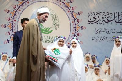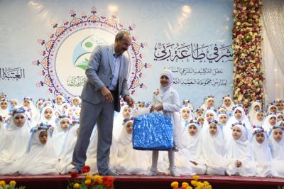 مبيّناً: "إنّ هذا الحفل ليس مجرّد نشاطٍ واحتفاء فقط، بل هو شهادةٌ منّا لبناتنا المثابرات اللّواتي سُجّلن في سجلّ التشريف الإلهيّ، وأنّ سجلّ الحسنات قد أشرعته الملائكة فاحرصن على ملئه بالعلامات الحسنة، فعليكنّ بطاعة الله وطاعة الوالدين والالتزام بالعبادات، والسير على نهج الطاهرات الصادقات كسيّدتنا الزهراء(عليها السلام)، فبذلك الفوز كلّه".