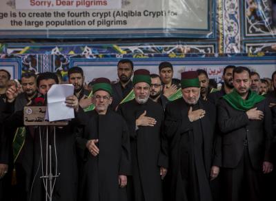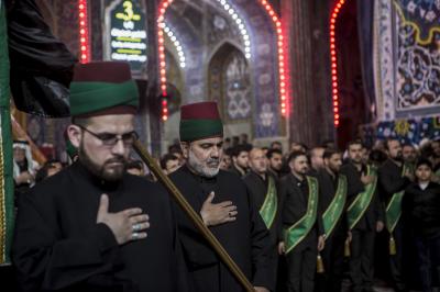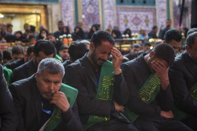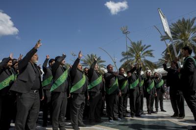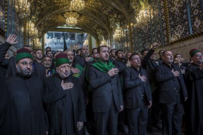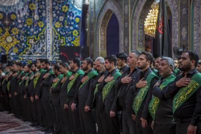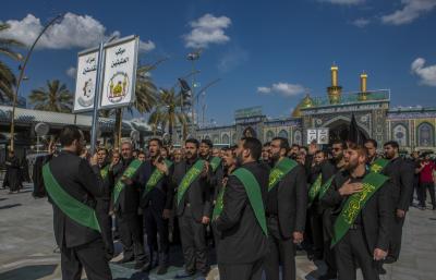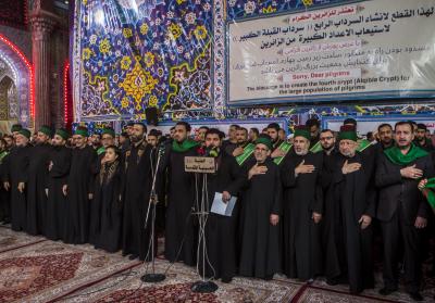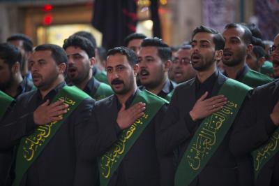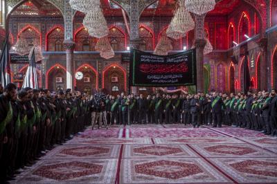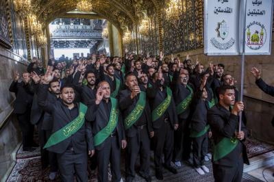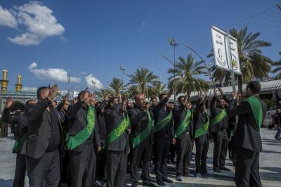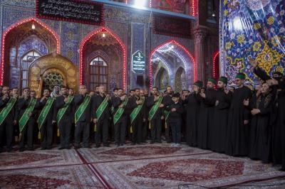 Walipo karibia haram ya Imamu Hussein (a.s) wakapokelewa na ndugu zao watumishi wa Atabatu Husseiniyya tukufu, wakajumuika pamoja katika huzuni na wakaingia katika malalo ya Imamu Hussein (a.s) na kufanya majlisi ya kuomboleza, wakaimba kaswida na mashairi ya huzuni pamoja na kuhuisha utiifu kwa Imamu wao na kuahidi kufuata mwenendo wake, na kuchukua mazingatio katika mwenendo wake na mapambano yake matukufu.