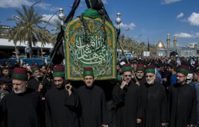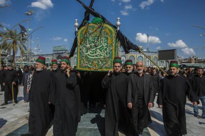 Matembezi yalianzia katika haram ya Abulfadhil Abbasi (a.s), watumishi wa Abulfadhil Abbasi (a.s) walisimama kwa mistari huku wakiimba kaswida na mashairi yanayo elezea msiba huo unao umiza roho zao na roho za waumini na wafuasi wa Ahlulbait (a.s), kisha wakaenda katika malalo ya bwana wa mashahidi, wakipitia eneo ya katikati ya haram mbili tukufu huku wanaimba kaswida za huzuni na kulia, kutokana na mazingira ya kuuwawa kwa Imamu wa saba Mussa Alkaadhim (a.s).