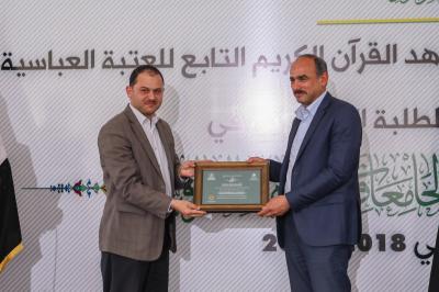 Gefolgt von dem Wort des oberen Beamten der Heiligen Abbasitischen Stätte, Ahmad Al-Safi. Anschließend wurde das Wort des Direktors des Projektmanagements, Herr Ali Hamad, übermittelt. Es folgte das Wort der an diesem Projekt beteiligten begünstigten Universitäten, welches der Präsident der Al-Kufa-Universität, Professor Dr. Mohsen Al-Dhalimi in ihrem Namen sprach.
