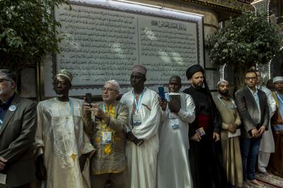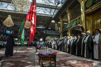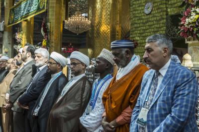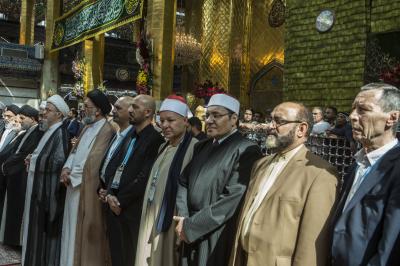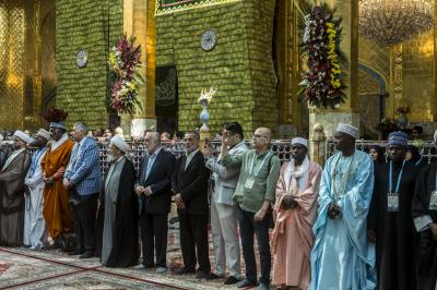 موضّحاً: "جمعنا اليوم حبُّ الحسين ونهجُ الحسين وتضحيةُ الحسين ومدرسةُ الحسين، لنكون إخواناً في الدين أو نظراء في الخلق، دعاةً الى التحرّر من نير العبوديّة بالتوجّه الى كلمة حقٍّ سواء في خدمة البشريّة".