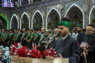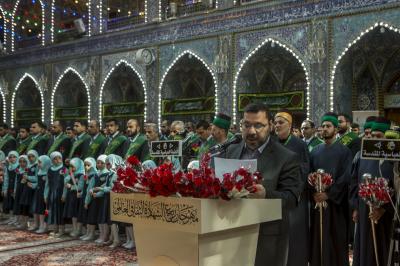 وأضاف: "ونحن نعيش ذكرى باقي الولادات المباركة للأنوار المحمّدية والأقمار العلويّة في هذا الشهر الكريم الكثير الفيوضات والمتشعّب الخيرات، فلليوم الثاني على التوالي ونحن في رحاب مهرجان ربيع الشهادة الثقافيّ العالميّ الخامس عشر، المقام تحت رعاية الأمانتين العامّتين للعتبتين المقدّستين الحسينيّة والعبّاسية تحت شعار: (الإمامُ الحسين-عليه السلام- منارٌ للأُمم وإصلاحٌ للقِيم)، وبفعّالياته المختلفة ابتداءً من حفل الافتتاح عصر أمس في الصحن الحسينيّ الشريف، الى الأمسيات القرآنيّة والأمسيات الأدبيّة والشعريّة، وجلسات البحوث الحوزويّة والأكاديميّة والندوات النسويّة، ومعارض الكتاب وغيرها من الفعّاليات، وبحضورٍ بهيج من داخل العراق وخارجه، بتوافد كوكبةٍ من رجال العلم والشخصيّات الدينيّة والاجتماعيّة من أكثر من (40) دولةً فيهم المسلم والمسيحيّ والصابئي، توافدوا الى كربلاء الحسين باختلاف أديانهم ومذاهبهم وألوانهم وأعراقهم وألسنتهم، قد جمعهم الحسين الثائر باسم الحقّ والإنسانيّة على الظلم والضلال والأنانيّة".
