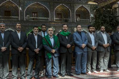 مضيفاً: "اليوم نجتمع في رحاب أبي الفضل العبّاس بن أمير المؤمنين علي بن أبي طالب(عليهم السلام)، قمر بني هاشم وحامي خدور الفواطم، حامل اللواء ومدرسة الإيثار والوفاء، بمناسبة ذكرى ولادته المباركة في مثل هذا اليوم، لننهل من نمير عينيه ونغترف الوفاء من جود كفّيه، ولا يسعني وأنا قبالة صرحه الشامخ وبحر عطائه الباذخ إلّا أن أقف متصاغراً أمام عظمته، منحنياً على أعتاب قبلته مرحّباً بضيوف أخيه وضيوفه بلسان حاله، وأنا الأقلّ في حضرة جماله وكماله، قائلاً: باسم الأمانتين العامّتين وخَدَمة المرقدين أيّها الضيوف الكرام وفدتم أهلاً ووطأتم سهلاً والسلام عليكم ورحمة الله وبركاته.. فإن لم تسعكم الأرجاء وإن لم تظلّكم السماء، وسعتكم قلوبنا وظلّلتكم جوانحنا.