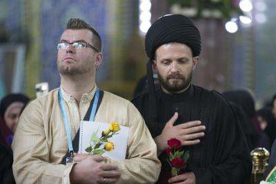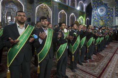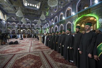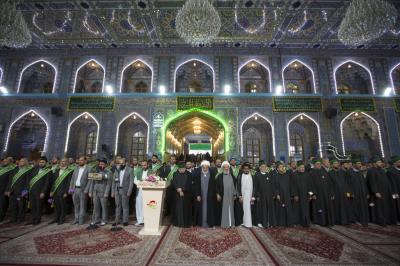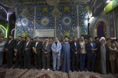 La cérémonie a commencé par la lecture de versets du saint Coran et Sourate Al Fatiha à la mémoire des martyrs d’Irak, puis les participants se sont dirigé vers le caveau du maître des martyrs (p) pour effectuer les rituels de la ziyarat, puis a était chanter le chant (Appel de la foi).