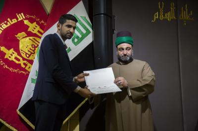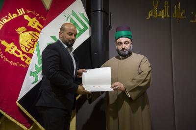 La cérémonie a débuté par une merveilleuse récitation des versets du Coran, suivie de la récitation de la sourate Al-Fatiha aux âmes des martyrs d’Irak, suivie d'un discours de la direction de l'exposition, prononcé par le professeur Mushtaq Al-Ali.