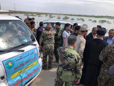 2- توجّه فرق الجهد الهندسيّ التابعة لفرقة العبّاس(عليه السلام) القتاليّة الى المناطق المتضرّرة في كلٍّ من المحافظتين، لدرء الأضرار ومعالجتها والمساهمة في تخفيف الأضرار التي نتجت جرّاء اجتياح السيول لبعض المناطق.