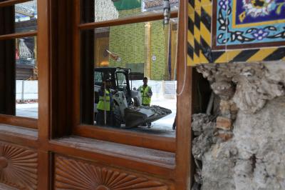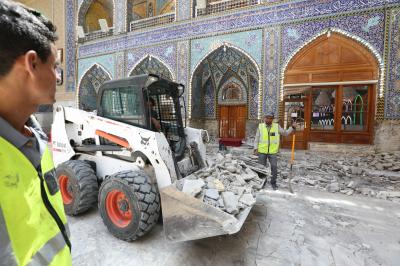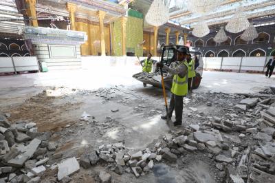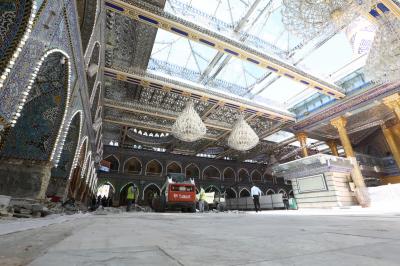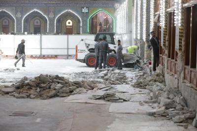 Les travaux de revêtement de la nef sainte Aba Al Fadl Al Abbas (p) ont repris dans la cinquième section située dans le côté sur entre la porte Al Qibla et porte Imam Al Hassan (p), après une pause de quelques jours en raison de la ziyarat de mi-Cha’ban.