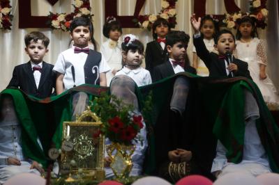 دو مهدکودک "الساقی" و "درر العمید" وابسته به بخش تربیت وآموزش عالی آستان قدس عباسی مراسم جشن فارغ التحصیلی گروه جدیدی متشکل از 313 کودک را صبح روز سه شنبه با حضور كودكان، اولیای آنها و برخی اعضای اداری آستان و نیز مسئولان اداری و پرورشی مجموعه آموزشی العمید در سالن مجتمع خدماتی الکلینی (قدس سره) برگزار کرد.