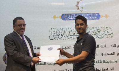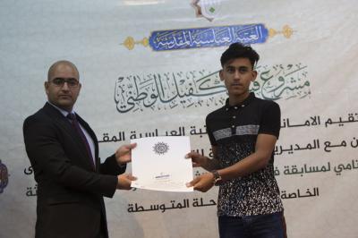 La cérémonie s’est terminée en honorant les lauréats de ce concours auquel ont assisté 2000 étudiants du niveau intermédiaire de la province d’Al Muthanna, parmi lesquels 50 étudiants ont été récompensés conformément au règlement du concours.
