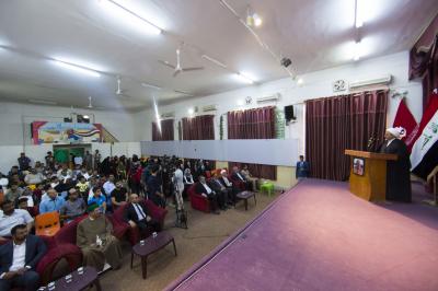 Puis le mot du sanctuaire saint Al Abbas prononcé par Cheikh Kamal Al Karbalaï du département des affaires religieuse, dans lequel il a dit : « Nous traversons un monde rempli de défis et nous devons être plus fort, et montrer tout le potentiel éducatif, moral, social, scientifique et humain, et de prendre un exemple d’Ahl Al Bayt (p) pour affronter ces défis ».