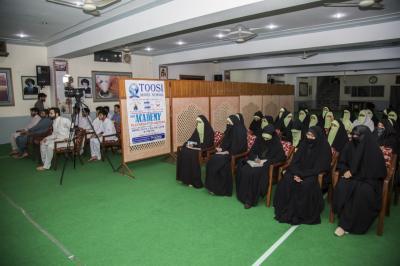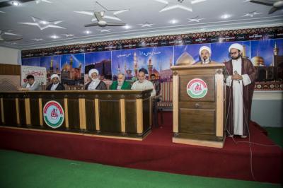 This was followed by a speech by Sheikh Mohammed Jawad Al-Salami, a member of the visiting delegation, in which he spoke about science and its high positions. The nations rise and raise their standards for the better by sciences. He pointed out that the road of science is a difficult road, especially for the nation is subjected to tests and trials. Concluding his words by congratulating them for choosing the path of Mohammed and his holy household.