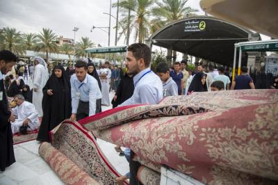 Die Diener von Aba Al-Fadl Al-Abbass -Friede sei mit ihm- mit großem Einsatz geben einen Beispiel für Hingabe bei ihren Aufgaben. Um den Besuchern den bestmöglichen Pilgererlebnis zu bieten, sodass die Spiritualität an diesen besonderen Nächte ein unvergleichliche Erinnerung wird.