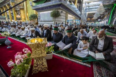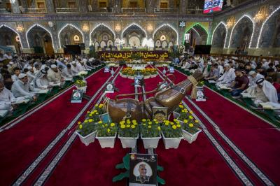 Hz.Ebulfazl Abbas’ın (Allah’ın selâmı üzerine olsun) Mukaddes Ziyaretgâhı’nın ana avlusunda mubarek Ramazan ayına özel olarak açılan Kur’ân-i Kerîm sofrası devam ediyor. Her gün ikindi vakti düzenlenen oturumlar; Kur’ân-i Kerîm baharı Ramazan ayını Allah-u Teâlâ’nın kelâmını okumak ve dinlemek isteyen ziyaretçilerin yoğun katılımına sahn eoluyor.