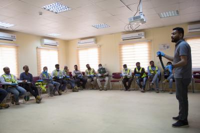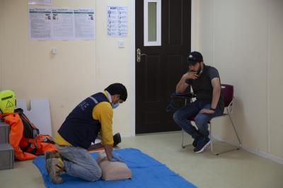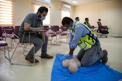 Er fügte hinzu: "Das Ziel dieser Kurse war als erstes die Sicherheit auf dem Arbeitsplatz zu erhöhen, sowie die Möglichkeit der Schnellen Hife, die Leben rettend sein kann. Jede Trainingseinheit war 8 Stunden lang und entsprach den internationalen Normen. Die Teilnehmer haben zwei Urkunden erhalten können, die eine von der Amerikanischen Herzakademie und die zweite von der Al-Kafeel Akademie für die Erste Hilfe und medizinisches Training".