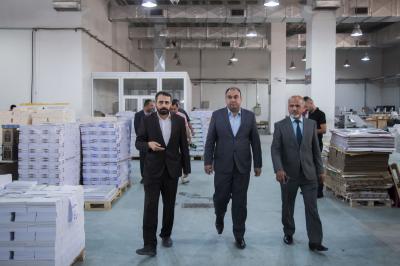 Dans le cadre de la série des visite dont témoigne Dar Al Kafeel d'impression, de publication et de distribution affilié au sanctuaire saint Al Abbas, dans le but de visualiser les moyens et équipements qu'elle contient, le président des médias irakien ; Mr Fadl Abbas Farajallah Al Assadi qui a visité les départements de l'imprimerie et a été accueilli et accompagné par le directeur exécutif de l'imprimerie Mr Firas Al Ibrahimi qui a expliqué en brève les capacités d'impression qui la caractérisent, en plus des moyens et équipements qu'elle contient.