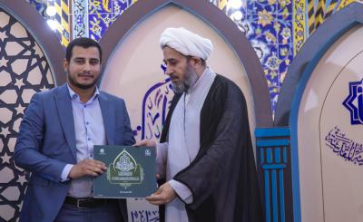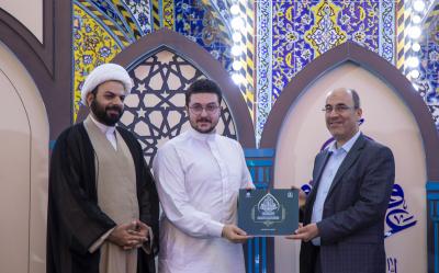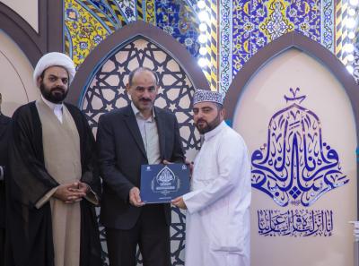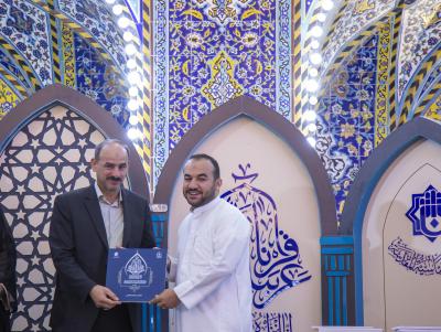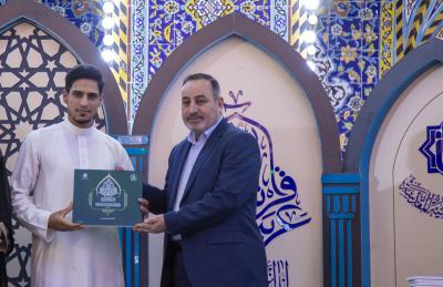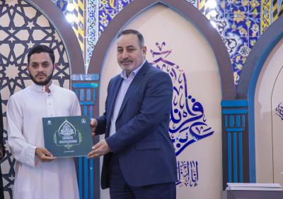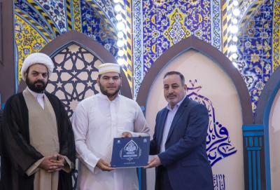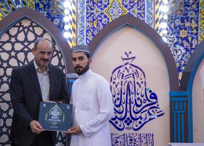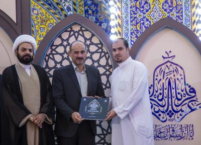 Directeur de l’Institut du Saint Coran Cheikh Jawad Nasrawi bin du parrain: "À l’occasion de la fin de la khutma du Coran, nous avons organisé une cérémonie sacrée du Coran et cette célébration a lieu tous les ans le soir de la fin de la khutma coranique, qui honore les lecteurs participant à la khutma ».