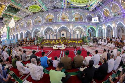 L’institut du saint Coran affilié au département des affaires de connaissances islamique et humaine au sanctuaire saint Al Abbas, a conclu à la nef sainte Aba Al Fadl Al Abbas (p), le mardi 29 Ramadan 1440 AH correspondant au 4 Juin 2019, les activités de la khutma coranique qui a débuté le premier jour du mois sacré de Ramadan avec un Juz’ par jour, écoutés et suivis par de nombreux visiteurs, et retransmis directement par plusieurs chaînes satellites de l’intérieur et extérieur d’Irak.