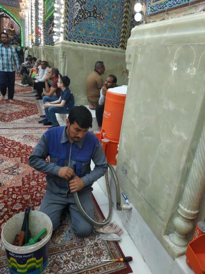 Il convient de mentionner que le processus consistant à fournir de l'eau aux visiteurs du sanctuaire du maître Aba al-Fadl al-Abbas (la paix soit sur lui) sous la responsabilité de la Division de l'eau. Cette opération a lieu à des heures précises selon un horaire défini dans les jours ordinaires. Et les jours de Ziyarat et de grands événements spécifiques, ainsi que le mois sacré du Ramadhan, les efforts sont intensifiés pour fournir l’eau nécessaire aux visiteurs.