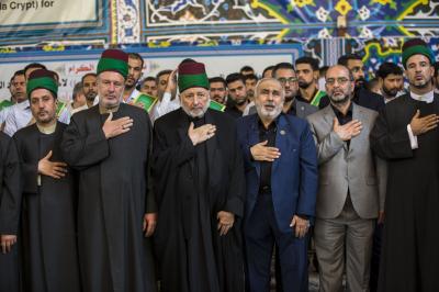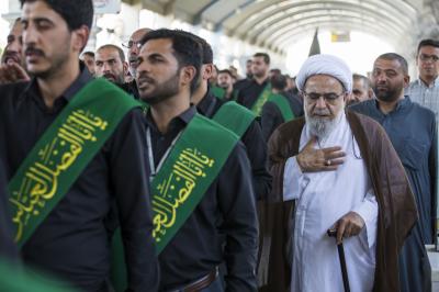 En commémoration de la destruction des tombeaux des Imams (la paix soit sur eux) au cimetière al-Baqi 'à l'occasion de son quatre-vingt-seizième anniversaire aujourd'hui le 8 Shawal 1440, et dans le cadre du programme du sanctuaire sacré d'al-Abbas (p) pour commémorer les joies et les peines d'Ahl al-Bayt (la paix soit sur eux), les serviteurs d'Aba al-Fadl al-Abbas (la paix soit sur lui) défilés lors d'une procession de condoléances pour commémorer cette triste occasion pour les amants et les fidèles de Ahl al-Bayt (que la paix soit sur eux) en un tel jour, dans lesquels des wahhabites malveillants qui détestent la lumière mohammadienne ont détruit les tombeaux des imams de Baqii (paix soit sur eux), qui comprenait les tombeaux de quatre des imams guidés (paix soit sur eux) que le noble prophète a recommandé à leurs adeptes et à leurs adeptes de les aimer et de marcher selon leur véritable approche, et ils sont: l'imam al-Hassan et l'imam as-Sajjad et l'imam al-Baqer et l'imam Sadeq (paix et bénédictions d'Allah soient sur eux).