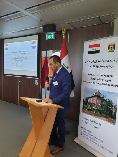 إذ استهل حفل الختام بإلقاء مجموعة من الأوراق البحثية التي تضمنت الواقع الزراعي بكل مفاصله وتخصصاته عالمياً، وبخصوص هذا المؤتمر تحدث مدير شركة الجود الدكتور "ميثم البهادلي" قائلاً: " توجهنا الى جامعة فاخينينكن Wageningen) ) التي تصنف ضمن الجامعات الأولى عالميا في مجال الزراعة فضلاً عن انها تضم أكثر من 2000 طالب دكتوراه من مختلف الدول والمثير للاهتمام ان الصين بعثت 500 طالب دكتوراه للدراسة في هذه الجامعة وذلك لأهميتها ورصانتها العلمية، وكان لدينا مؤتمر في الجامعة لمناقشة التقرير الفني الذي تم اعداده اثناء زيارتهم للعراق وتوقيع مذكرة تفاهم مع الجانب العراقي التقرير استهدف ثلاث فئات، الفئة الأولى: الفئات الحكومية متمثلة بالوزارات، أما الفئة الثانية هي (المعلومة للمعلومة) عبر الجامعات والمعاهد الزراعية، أما الفئة الثالثة والأخيرة فهي فئة القطاع الخاص مباشرة وهي المستهدفة في هذا التقرير، من اجل بناء علاقة رصينة بين القطاعين الخاص الهولندي والعراقي لتطوير الواقع الزراعي وبناء العلاقات التجارية والصناعية، وقد جرى البحث في المحاضرات التخصصية وقد تم ترشيحنا من قبل السفارة العراقية على ان أكون المتحدث الرسمي عن القطاع الخاص العراقي وقد تكلمنا بشكل عام بداية عن القطاع الخاص في العراق وأهمية هذه الشراكة وهذا العمل وما نطمح إليه في نقل التكنولوجيا والخبرات الهولندية الى العراق.