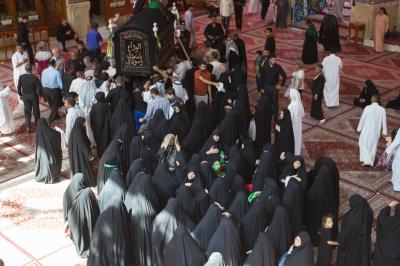 من جهةٍ أخرى أعدّت العتبتان المقدّستان الحسينيّة والعبّاسية كعادتهما في استذكار وإحياء مناسبات ولادات ووفيات أئمّة أهل البيت(عليهم السلام)، برنامجاً عزائيّاً اشتمل على العديد من الفقرات العزائيّة التي جسّدت هذه المصيبة، حيث اتّشح صحنا أبي عبدالله الحسين وأخيه أبي الفضل العباس(عليهما السلام) بالسواد وانتشرت مظاهر الحزن في جميع أرجائهما.