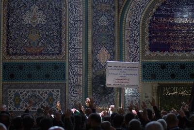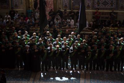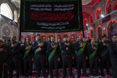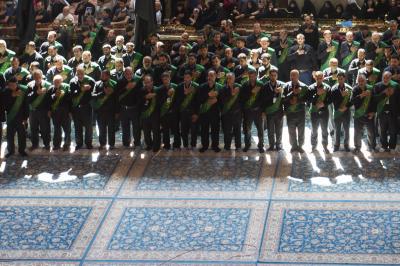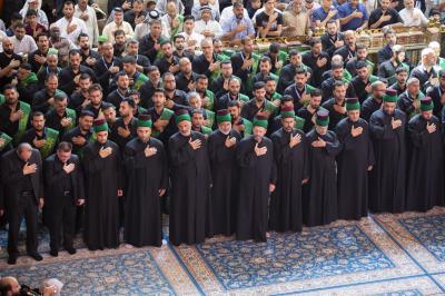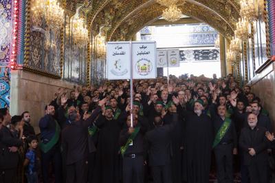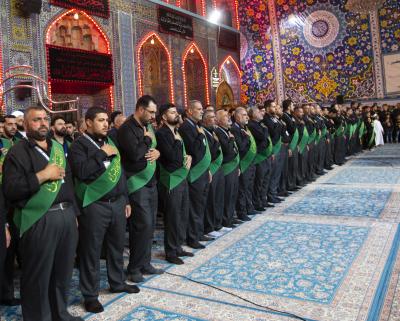 وعند دخولهم للصحن الشريف لسيّد شباب أهل الجنّة الإمام الحسين(عليه السلام) كان في استقبالهم موكبُ خَدَمَة العتبة الحسينيّة المقدّسة، ليعقدوا سويّةً في صحن أبي عبدالله الحسين(عليه السلام) مجلس عزاءٍ ومراثي حسينيّة، استذكرت في أبياتها هذه الشخصيّة العظيمة وما تركته من أثرٍ بالغ في أمّة النبيّ محمد(صلّى الله عليه وآله).