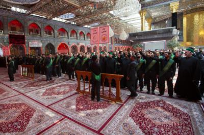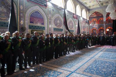 فقد اصطفّ خَدَمةُ المرقد الطاهر يتقدّمهم الأمينُ العامّ للعتبة العبّاسية المقدّسة وعددٌ من أعضاء مجلس إدارتها بموكبٍ عزائيّ موحّد بعد ظهر اليوم السبت (25شوّال 1440هـ) الموافق لـ(29 حزيران 2019م)، وكانت نقطة انطلاقهم من الصحن الشريف لأبي الفضل العبّاس(عليه السلام)، حيث عقدوا في بادئ الأمر مجلساً عزائيّاً بهذه المناسبة ثمّ انتظموا على شكل كراديس عزائيّة، لتكون وجهتم نحو ضريح سيّد الشهداء الإمام الحسين(عليه السلام) مروراً بساحة ما بين الحرمين الشريفين.