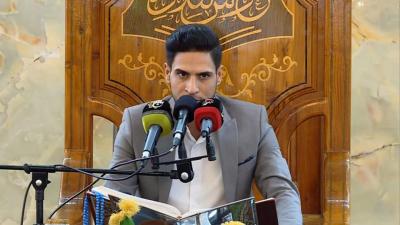 - Reader Ali Jawad Al-Furaiji, reader of the Institute of the Holy Quran - Baghdad Branch and the coach of the preliminary stage.