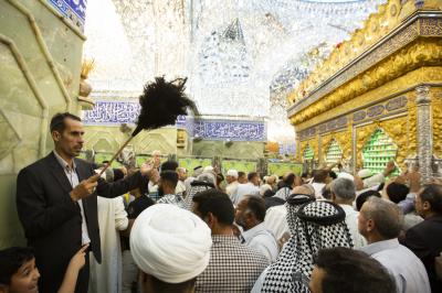 لا يخفى عن ناظر أيّ زائرٍ يدخل الحرم المطهّر للمولى أبي الفضل العبّاس(عليه السلام) وجود عددٍ من العناصر منتشرين على مدار الحرم المقدّس، واقفين وهم يحملون بأياديهم ما يُسمّى بـ(الريشة) ويعملون على تنظيم صفوف الزائرين وسيرهم وهم في قمّة التركيز والدقّة في العمل، وهؤلاء هم من خَدَمَة قمر بني هاشم(عليه السلام) ومن كوادر وحدة تنظيم الزائرين التابعة لشعبة الحرم الشريف في العتبة العبّاسية المقدّسة.