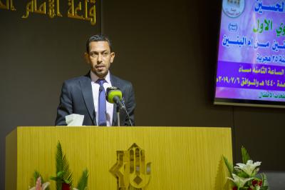 سپس آقای سعد علی حسین از هیئت نور الحسین (علیه السّلام) به نمایندگی از برگزارکنندگان این جشن سخنرانی نمود. وی در این سخنرانی به بیان چگونگی دست یافتن به تاریخ تقریبی این مناسبت پرداخت و سپس به منزلت حضرت ام البنین (علیها السلام) و جایگاه ایشان و اینکه چگونه بابی جهت برآوردن حاجات مومنان شده، اشاره نمود.