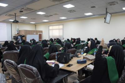 وفي الفترة المسائية وعلى إحدى قاعات جامعة العميد كانت هنالك ورشةٌ تفاعليّة قدّمها الأستاذ حسن الجذيلي، تمحورت حول مضامين دعاء مكارم الأخلاق وآثاره الروحيّة والنفسيّة والعمليّة، وتشجيع المشتركات على التعبير عن أفكارهنّ حول النيّة والاعتقاد واليقين والعمل عبر أعمالٍ فنيّة أتممنها أثناء المحاضرة.