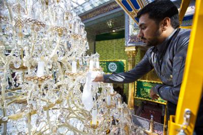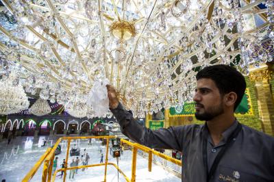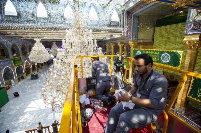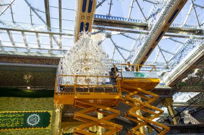Kazi ya usafi inahusisha kutoa vumbi kwenye maraya na mapambo kwa kutumia vifaa maalum vya kusafishia vioo, sambamba na kutumia baadhi ya mitambo na winchi kwa ajili ya kufikia sehemu za juu ndani ya haram tukufu ya Abulfadhil Abbasi (a.s).
