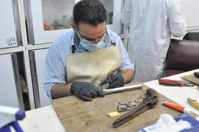 از میان اشیای نفیس و آثار باستانی که آزمایشگاه الکفیل به ترمیم آن می پردازد سلاحهای قدیمی هستند چه برخی که در موزه به نمایش درآمده اند چه برخی دیگر که در معرض دید قرار نگرفته است. این سلاحها گواه حملات و جنگهایی هستند که در طول تاریخ به وقوع پیوسته اند.