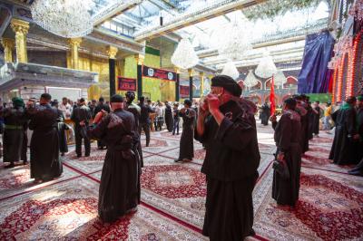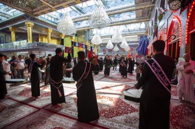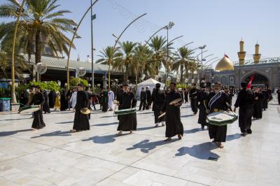 Huku wakiwa wamejaa huzuni na majonzi makubwa wametembea hadi kwenye haram ya Abulfadhil Abbasi (a.s) kabla ya kwenda katika malalo ya bwana wa mashahidi (a.s), wameanza kupita katika malalo ya mbeba bendera ya Imamu Hussein (a.s) na kiongozi wa jeshi lake na alikua ndio mlango wa kuelekea kwa Imamu Hussein (a.s), wameingia ndani ya haram yake tukufu na kumpa pole, halafu wakaelekea katika malalo ya baba wa watu huru (a.s) kwa kupitia katika uwanja wa katikati ya haram mbili tukufu huku wakiimba kaswida za huzuni na kupiga vifua vyao, hadi walipofika katika malalo ya Abu Abdillahi (a.s) na kufanya majlis ya kuomboleza.