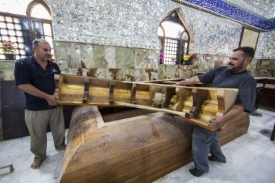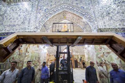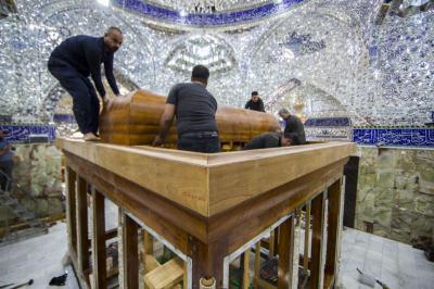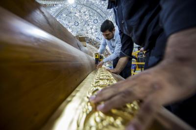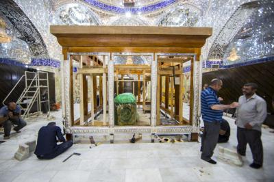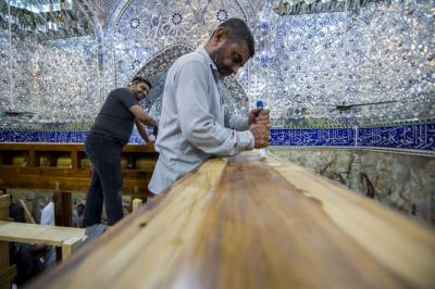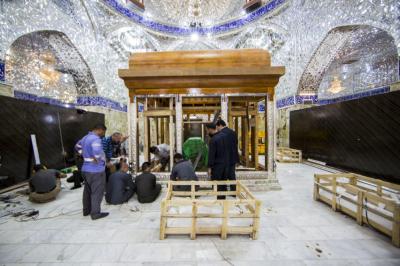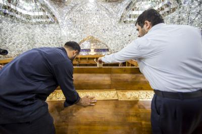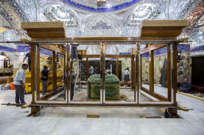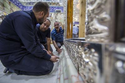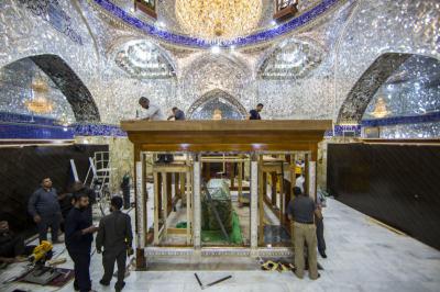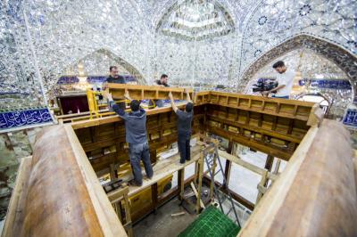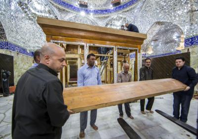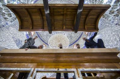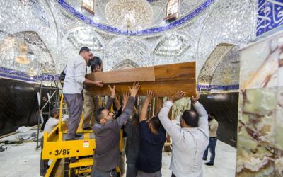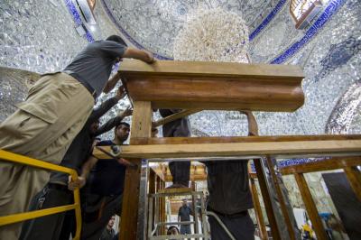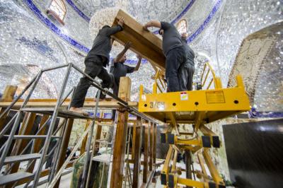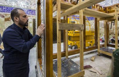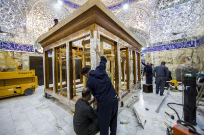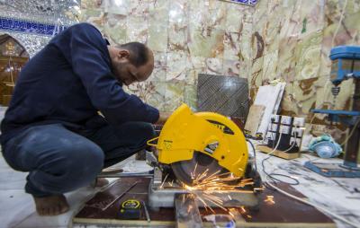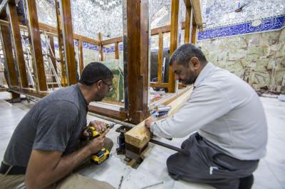 تواصلُ كوادرُ وملاكات مصنع السقّاء لصناعة شبابيك الأضرحة والمراقد والمزارات المطهّرة التابع للعتبة العبّاسية المقدّسة، عملها ولليوم الثاني على التوالي بنصب الشبّاك الجديد لمزار القاسم بن موسى بن جعفر الكاظم(عليهم السلام).