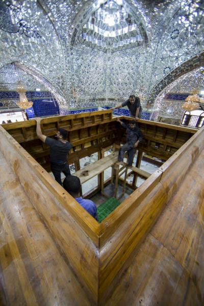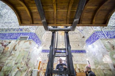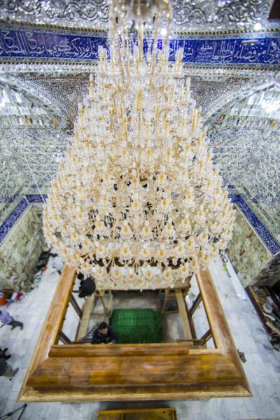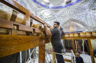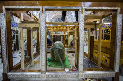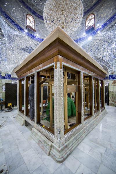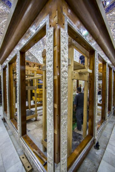 مضيفاً: "إنّ أعمال التركيب التي تسعى ملاكاتُ المصنع لإنجازها تشمل الكتيبة القرآنيّة والكتيبة الشعريّة والكلوي الأوّل المصاحب للكتيبة القرآنيّة، ومن ثمّ الممشى والكلوي الكبير المصاحب للنقوشات المطليّة بالذهب، والكلوي الأخير المطليّ بالذهب والإزارة العُليا المطليّة بالذهب مع كتاباتٍ شعريّة".