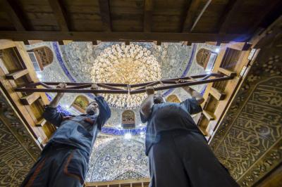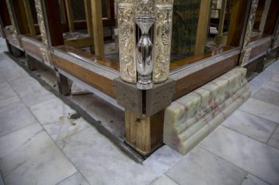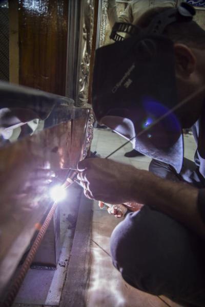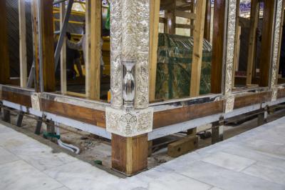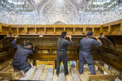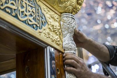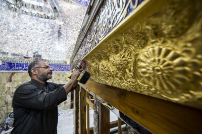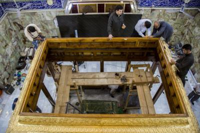 Im 3. Tag in Folge laufen ununterbrochen die Arbeiten zum Einbau des neunen Schaugitterfenster der Grabstätte von Al-Qassem-Friede sei mit ihm- Sohn von Imam Al-Kadem -Friede sei mit ihm-. Durchgeführt werden diese wichtigen Schritte vom erfahrenen Kader der Al-Saqaa Fabrik für die Herstellung von Toren und Schaugitterfenstern der Heiligtümer von der heiligen Abbassitischen Stätte.