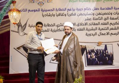 اختُتمت يوم أمس الأحد (16 ذو الحجة 1440هـ) الموافق لـ ( 18 آب 2019م ) دورة براعم الخطابة الحسينيّة بنسختها الثانية والتي تُقيمها شعبة الخطابة الحسينيّة في العتبةِ العباسيّة المقدّسة تحتَ شعار (الإمام الحسين –عليه السلام- مصباح الهدى وسفينة النجاة)، وسط حضور غفير يتقدّمهم عدد من اعضاء مجلس إدارة العتبة المقدّسة.