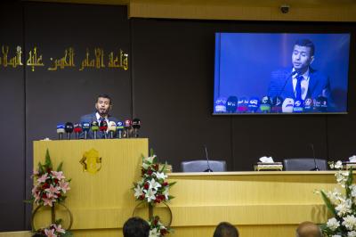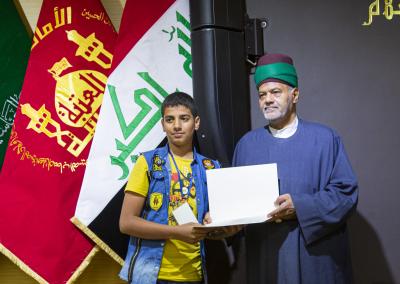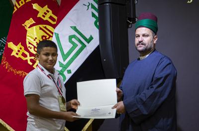 حفلُ الختام الذي أُقيم على قاعة الإمام الحسن المجتبى (عليه السلام) استُهل بتلاوةِ آياتٍ من الذكر الحكيم اعقبتها قراءة سورة الفاتحة المُباركة على أرواح شُهداء العراق ومن ثم الاستماع للنشيد الوطنيّ العراقيّ ونشيد العتبة العباسيّة المقدسة الموسوم بـ(لحنُ الإباء).