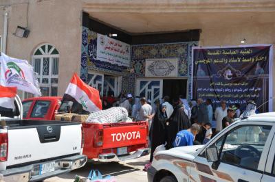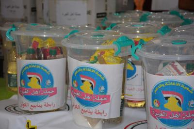 Dans le cadre de son plan humanitaire et dans le cadre des célébrations de l'Aïd al-Adha, la campagne "Ahl al-Ghira" organisée en coordination avec les cortèges de secours et de soutien de la Division des secours et du soutien d'Al-Abbas (p) Sanctuaire dans la province de Wassit, marché caritatif dans le district d’Al Hay, dans lequel des produits gratuits ont été offerts à 865 familles de martyrs de la Mobilisation populaire et aux familles dans le besoin, afin de contribuer à alléger leur fardeau et de rendre hommage à ces familles , qui ont sacrifié leurs plus chers pour la préservation de ce pays et de ses sanctuaires.