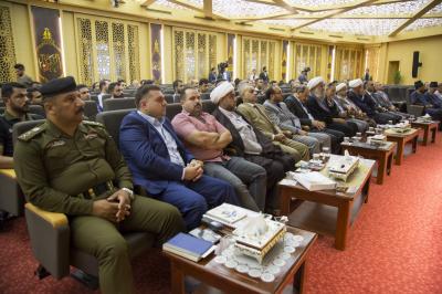The conference, which was held in Hall of Imam Al-Hassan (peace be upon him) at the al-Abbas's (p) holy shrine, witnessed the presence of religious and security personalities and delegations as well as representatives of relevant parties, and after reciting verses from the Holy Quran and reciting Surat Al-Fatiha in honor of the martyrs of the Iraq then listening to the national anthem and the anthem of the Holy Shrine. There was a speech of the General Secretariat of the Holy Shrine delivered by the Board Member Prof. Dr. Abbas Rashid Al-Moussawi, in which he stressed that intellectual security constitutes preventive security in the way of immunizing the individual from falling into the trap of threats to community peace.