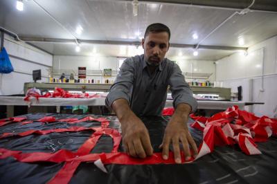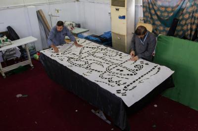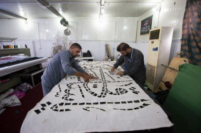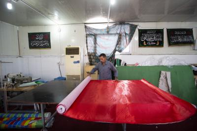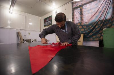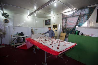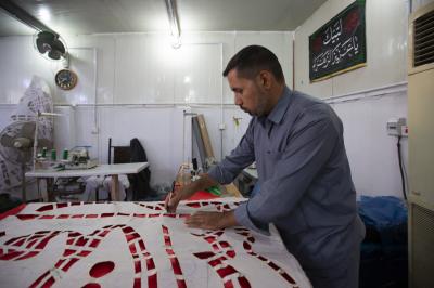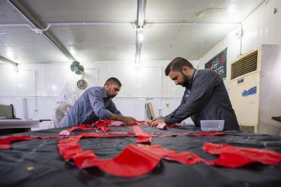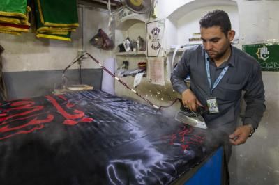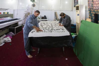 Im Rahmen der Vorbereitungen der Heiligen Abbassitischen Stätte für den Monat Muharram, hat die Nähsektion der Abteilung für Geschenke und Gelübde das Design und die Näharbeiten der schwarzen Flagge beendet, die am Vorabend des ersten Tag des heiligen Monats Muharram 1440 in besonderen Beileidsritualen, die jährlich abgehalten werden, erhoben wird.