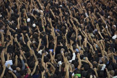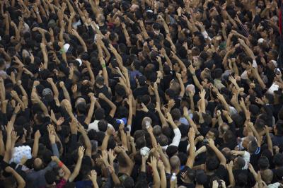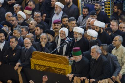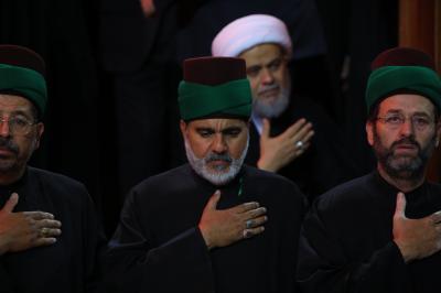 Akabinde Şeyh Tahir el-Hakanî bir mersiye okudu. Ardından cenaze marşı kızıl sancak indirilip ‘Lebbeyke Ya Huseyn/ Emrindeyiz ya Huseyn’ sloganları ve meşhur mersiye ‘Ya şehr-i Aşûr’ eşliğinde kara renkli matem sancağı haşmetli kubbede göndere çekilip dalgalandırıldı.